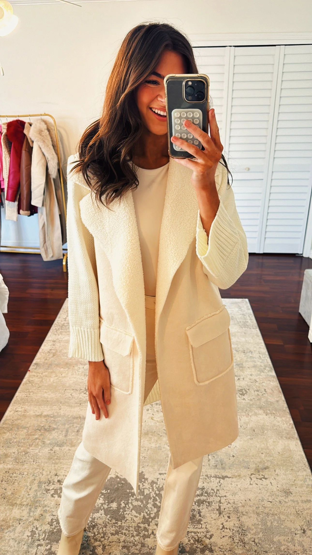 Last but not least the coziest winter white outfit! This cardigan is amazing! The quality is 10/10 and could be dressed up or down! I paired it with these cream, straight leg jeans and a leather cream bodysuit. But, you could dress this look down with leggings and an athletic tank for a cozier fit! There’s nothing better than a good cardigan for the winter! I am wearing a size small in this and it runs true to size, but the sleeves do run a little short!
